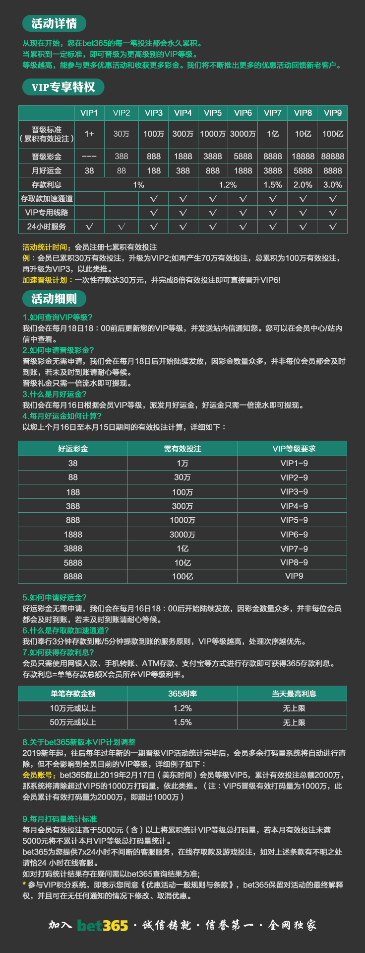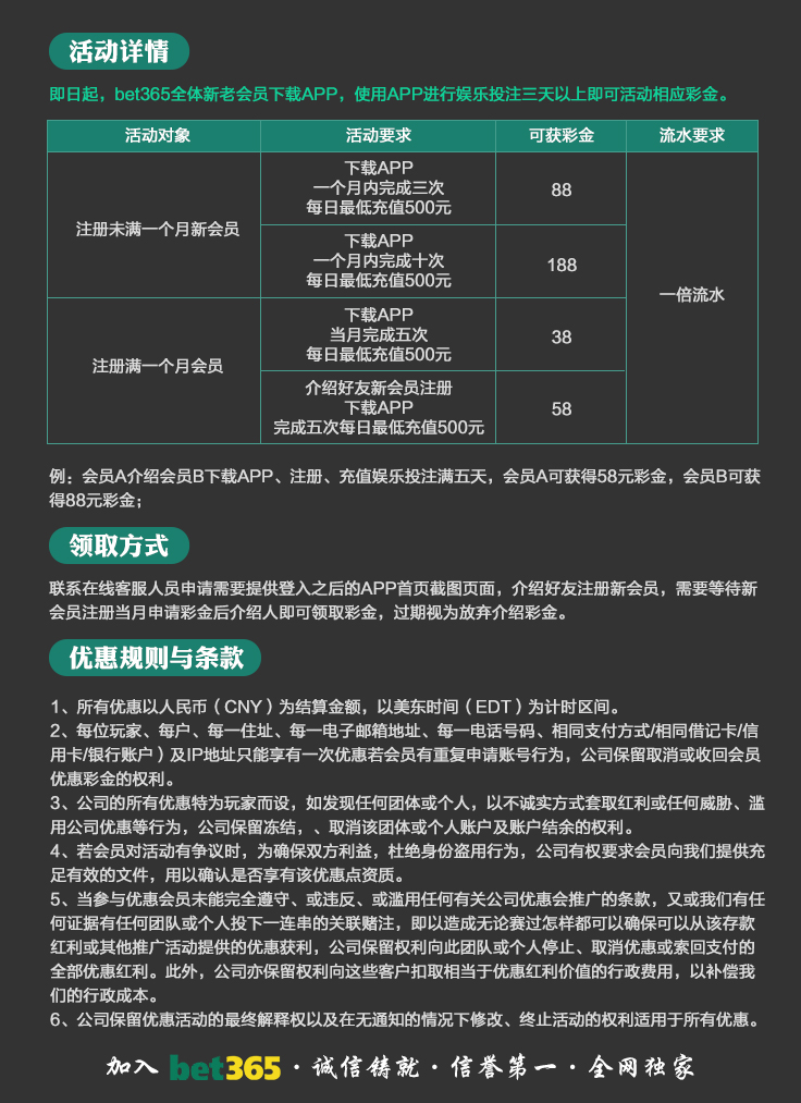 VIP消息★VIP晋级彩金及月好运彩金,第一百零八期已经全部派发完成,请会员自行登入账号查看,会员自身vip等级详情请点击“促销”查询。若有任何疑问可第一时间联系在线客服!bet365 运营团队宣 2025-8-18