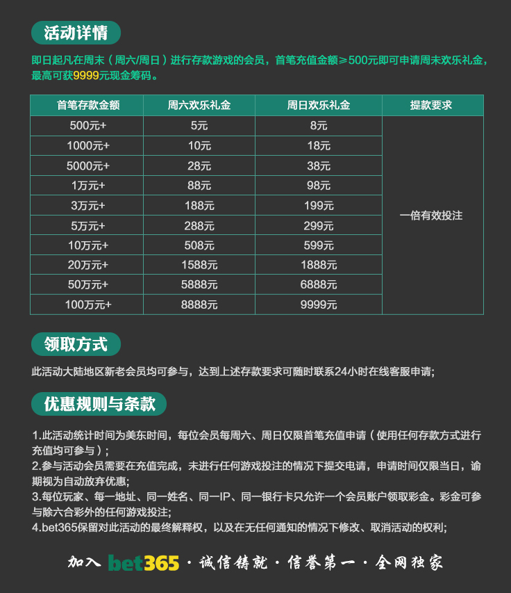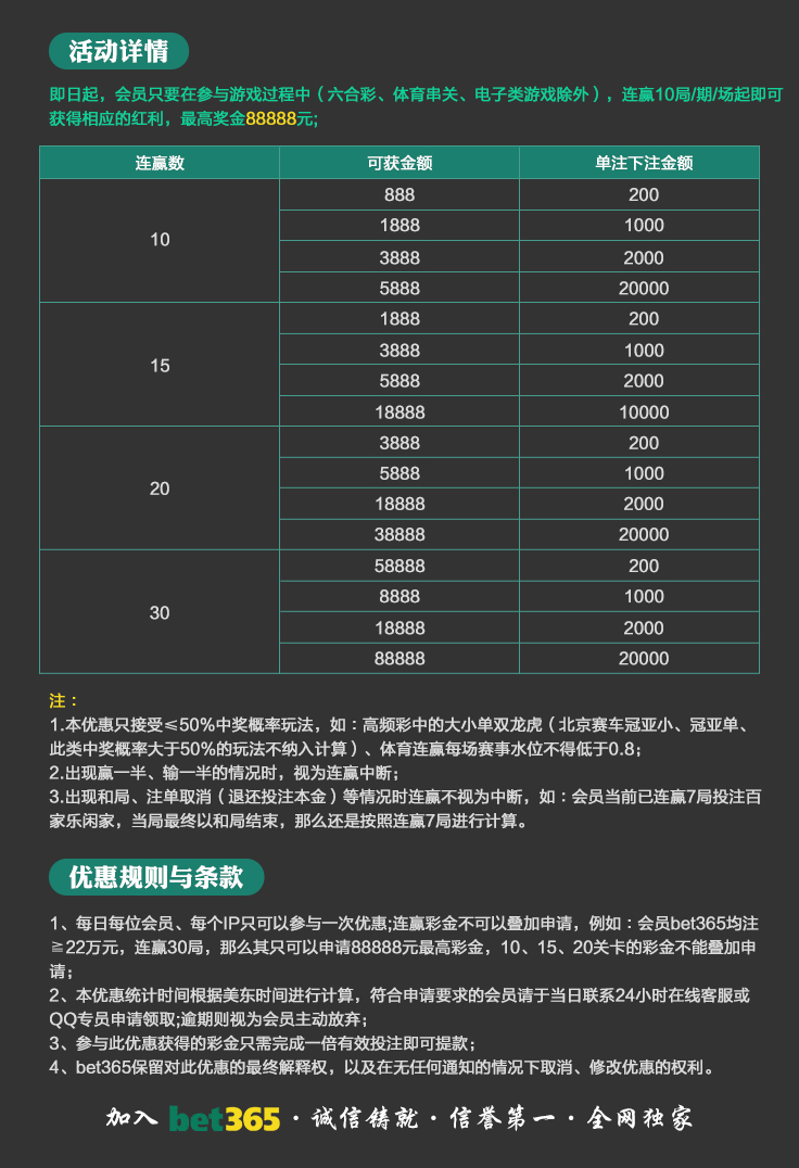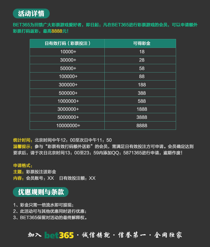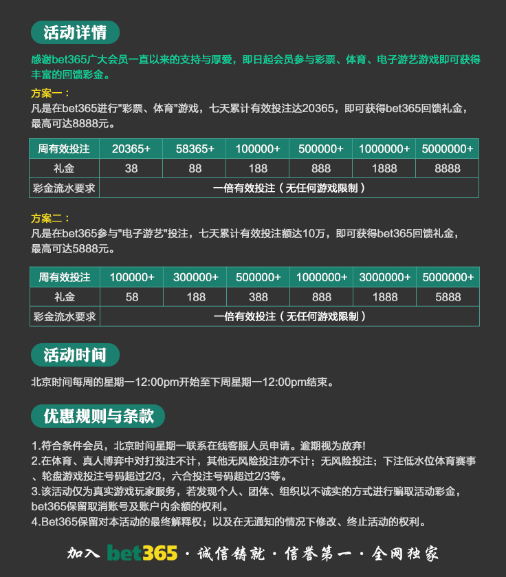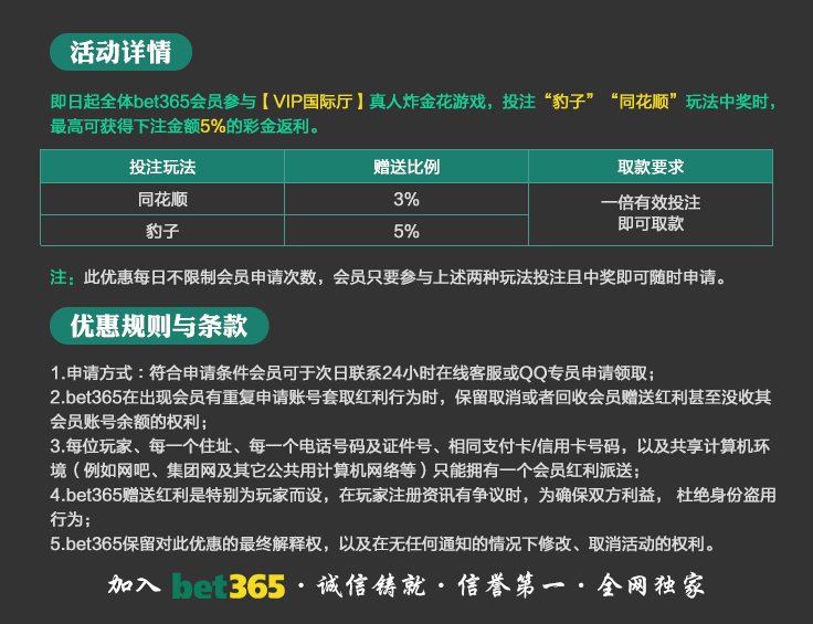 VIP消息★VIP晋级彩金及月好运彩金,第一百零八期已经全部派发完成,请会员自行登入账号查看,会员自身vip等级详情请点击“促销”查询。若有任何疑问可第一时间联系在线客服!bet365 运营团队宣 2025-8-18温馨提示:美东时间2025年10月20日天天返水优惠额度已发放至您的会员账户,请您登入账户查收!